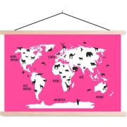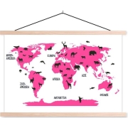Textiel poster - Wereldkaart Kinderen - Dieren - Roze - Schoolplaat Deze bijzondere poster past goed in de woonkamer of (kinder)slaapkamer! Productkenmerken…
