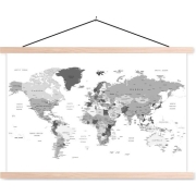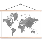 Posterhanger incl. Poster - Schoolplaat - Wereldkaart - Wit - Grijs - 150x100 cm - Blanke latten