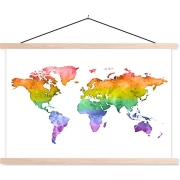 Textiel poster - Wereldkaart - Pride vlag - Waterverf - Schoolplaat Deze bijzondere poster past goed in de woonkamer of (kinder)slaapkamer! Productkenmerken…