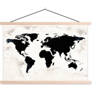 Posterhanger incl. Poster - Schoolplaat - Wereldkaart - Zwart - Hout - 150x100 cm - Blanke latten
