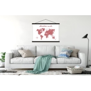 Textiel poster - Wereldkaart - Rood - Quote - Posterhanger Deze bijzondere poster past goed in de woonkamer of (kinder)slaapkamer! Productkenmerken …