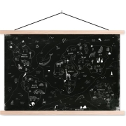 Posterhanger incl. Poster - Schoolplaat - Wereldkaart - Kinderen - Zwart - Wit - 150x100 cm - Blanke latten