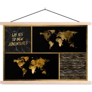 Textiel poster - Wereldkaart - Collage - Spreuken - Goud - Schoolplaat Deze bijzondere poster past goed in de woonkamer of (kinder)slaapkamer! Productkenmerken…