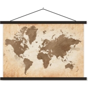 Posterhanger incl. Poster - Schoolplaat - Wereldkaart - Bruin - Verf - 150x100 cm - Zwarte latten