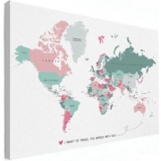 Wereldkaart I Want To Travel The World With You - Canvas 60x40