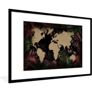 Fotolijst incl. Poster - Wereldkaart - Tropische planten - Bruin - 90x60 cm - Posterlijst