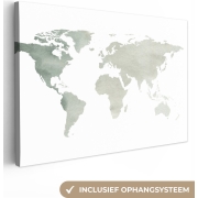 Canvas Wereldkaart - 140x90 - Wanddecoratie Wereldkaart - Grijs - Wit