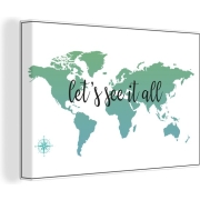 Canvas Wereldkaart - 180x120 - Wanddecoratie Wereldkaart - Quote - Where To Next