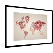 Fotolijst incl. Poster - Wereldkaart - Letters - Kleuren - 120x80 cm - Posterlijst