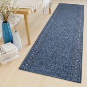 Tapiso Antislip Rubber Mat Loper Blauw Woonkamer Slaapkamer Hal Klassiek Modern Rubbermat Maat- 80x1450