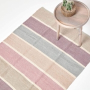 Wasbaar Chenille-gestreept vloerkleed, gemaakt van 100% puur katoen, onderhoudsvriendelijk en duurzaam