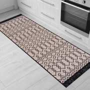 Tapijtloper - Kleed voor woonkamer, slaapkamer, keuken, kinderkamer, badkamer - Boho Kelim kleden - loper gang kleed zwart-beige, maat: 60 x 180 cm