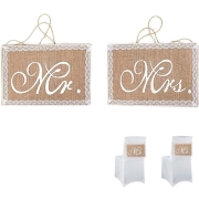 1 paar Stoel Banner Set Stoel Decoratie Banner Linnen Mrs Mr Garland Banner Mrs Mr Wedding Banner Mr en Mrs Stoel Decoratie voor Huwelijksceremonie Foto Props Bruids Douche Decoratie (Lace)