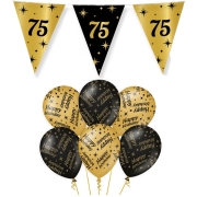 Leeftijd 75 jaar verjaardag versiering pakket zwart/goud 2-soorten -