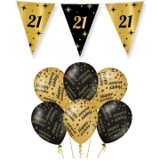 Leeftijd 21 jaar verjaardag versiering pakket zwart/goud 2-soorten -