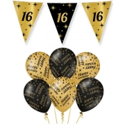 Leeftijd 16 jaar verjaardag versiering pakket zwart/goud 2-soorten -