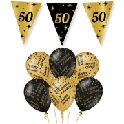Leeftijd 50 jaar verjaardag versiering pakket zwart/goud 2-soorten -