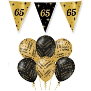 Leeftijd 65 jaar verjaardag versiering pakket zwart/goud 2-soorten -
