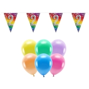 Boland Party 2e jaar verjaardag feest versieringen set bestaande uit 100x stuks gekleurde ballonnen van 26 cm en 2x stuks plastic gekleurde feest leeftijd thema vlaggetjes van 6 meter. Versier uw…