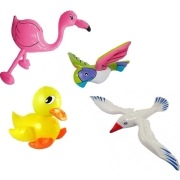 Set van 4 opblaasbare vogels. De opblaasbare set bestaat uit: een roze flamingo van ongeveer 42 cm een meeuw van ongeveer 76 cm een gele eend van ongeveer 42 cm en een papegaai van ongeveer 23 cm…