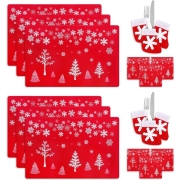 Placemat, afwasbaar, set van 6 placemats voor Kerstmis, vilten placemats voor kinderen, rood