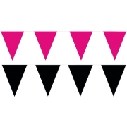 Zwart/Roze feest punt vlaggetjes pakket 80 meter -