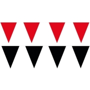 Zwart en rode vlaggetjes pakket. Totaal 120 meter vlaggetjes. Materiaal: plastic. Dit artikel bestaat uit 6x Party Vlaggenlijn puntvlaggetjes - kunststof - rood - 10 meter -…