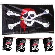 Piraten feest/verjaardag versiering set 2x vlaggenlijnen en 1x piratenvlag 90 x 150 cm -