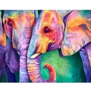 Maak dit prachtig schilderij van twee olifanten afgebeeld in sfeervolle en warme kleuren. Diamond Painting pakket van Artibalta. Inhoud pakket: * volledig gevuld patroon. * voorbedrukt canvas met…