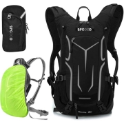 SPGOOD Fietsrugzak, 30 liter - Zwart, waterdicht, ultralicht, voor dames en heren, multifunctioneel, met regenkap, helmafdekking, rugzakken, mountainbike