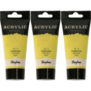 Acrylverf/hobbyverf op waterbasis - 3x - geel - 75 ml - Schilderen/knutselen -