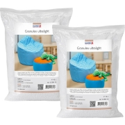 2x stuks zak met 1000 gram vulmateriaal Granulex fijne korrels. Gebruik deze kleine balletjes vulling voor het opvullen of verstevigen van kussens en sierkussens, knuffels, bank, poppen, poef of…
