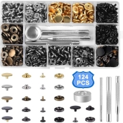 Automatische knopen, 120 set van 6 kleuren, metalen knoppen met 4 stuks installatiegereedschappen voor kleding, jeans, tassen, jurken, decoratie