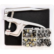 Drukknopset met tang, zwart, diameter 15 mm, messing, drukknopen, naai-accessoires, knopen om aan te naaien, snaps voor doe-het-zelf knutselen, stof, kledingtassen