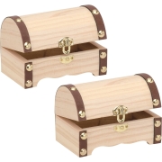 Houten schatkistje met sluiting en deksel - 2x - 14 x 8 x 6 cm - Sieraden/spulletjes/sleutels -