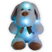 Bruin-witte pluche knuffelhond met LED-licht, lengte: 30 cmDoor te drukken op de buik gaat het licht aan en verschijnt in meerdere leukere kleuren.…