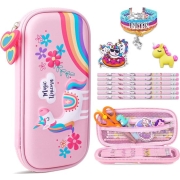 Etui, 3D Eva Leuke Etui voor Meisjes, Hoge Capaciteit Waterbestendige Briefpapier Set voor Kinderen, Schoolbenodigdheden voor Kinderen Terug naar School Geschenken, Kerstcadeaus, Eenhoorn-B, S, Schoonheid Case