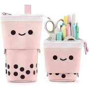 Etui voor studenten, potlodenhouder, telescopisch etui voor studenten, tieners, meisjes, jongens, volwassenen, pennenetui roze, pennenetui