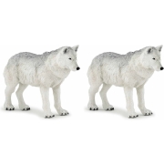 Set van 2x stuks plastic speelgoed figuur witte wolven 9,5 cm -
