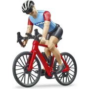 Materiaal: kunststof Kleur fiets: rood Kleur wielrenner: blanke man met donker haar Afmetingen: 10,6x3,7x6,9cm Serie: BWorld Bijzonderheden: draaibaar…