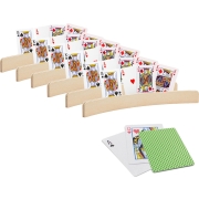 6x stuks Speelkaarthouders hout 35 cm inclusief 54 speelkaarten groen -