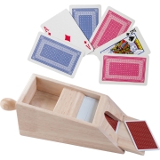 Houten Blackjack kaartgever/slof met handvat 28 x 11,5 x 9,5 cm inclusief 4x sets speelkaarten -