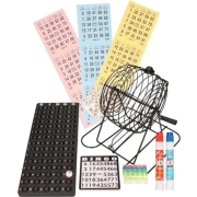 Bingo spel zwart/wit complete set 29 cm nummers 1-75 met molen en bingokaarten. Compleet bingospel, bestaande uit: een metalen bingomolen met sorteerbord/controlebord, 75x witte balletjes, 168x…
