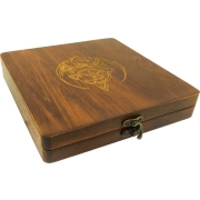 Fraaie berkenhouten bewaardoos voor dobbelstenen (6 rijen). De doos is van binnen bekleed met rood fluweel en heeft een mooie opdruk van een gouden draak.…