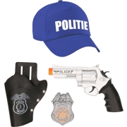 Carnaval verkleed politie agent pet/cap - blauw - met pistool/badge - kinderen - accessoires -