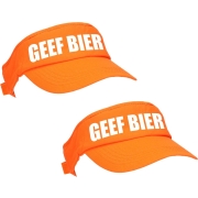 2x stuks oranje supporter geef bier zonneklep voor EK/ WK fans. Op deze oranje zonneklep / pet staat in witte grote letters: GEEF BIER. Grappige zonneklep voor de echte bierliefhebber! Leuk…