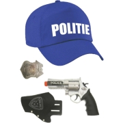 Politie verkleed cap/pet blauw met pistool/holster/badge voor kinderen -