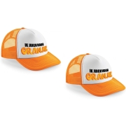 2x stuks oranje/ wit Ik juich voor oranje snapback cap/ truckers pet dames en heren - Koningsdag/ek/ -