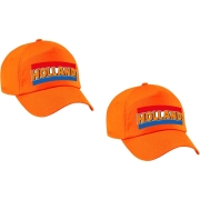 2x stuks Holland supporter pet / cap oranje met Nederlandse vlag - EK / WK voor volwassenen. Deze Nederland fan cap is bedrukt met de tekst: Holland in de kleuren van de Nederlandse vlag. …