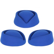 3x Blauwe stewardess hoedjes, geschikt voor dames. Materiaal: wolvilt. Omvang: ca. 59 cm. Wasvoorschrift: enkel afnemen met een vochtige doek. Stewardessen verkleedhoeden/carnavalshoeden verkleed…